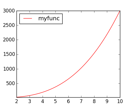 quickGraph(myfunc,2,10) # show plot of f between xmin = 2 and xmax = 10